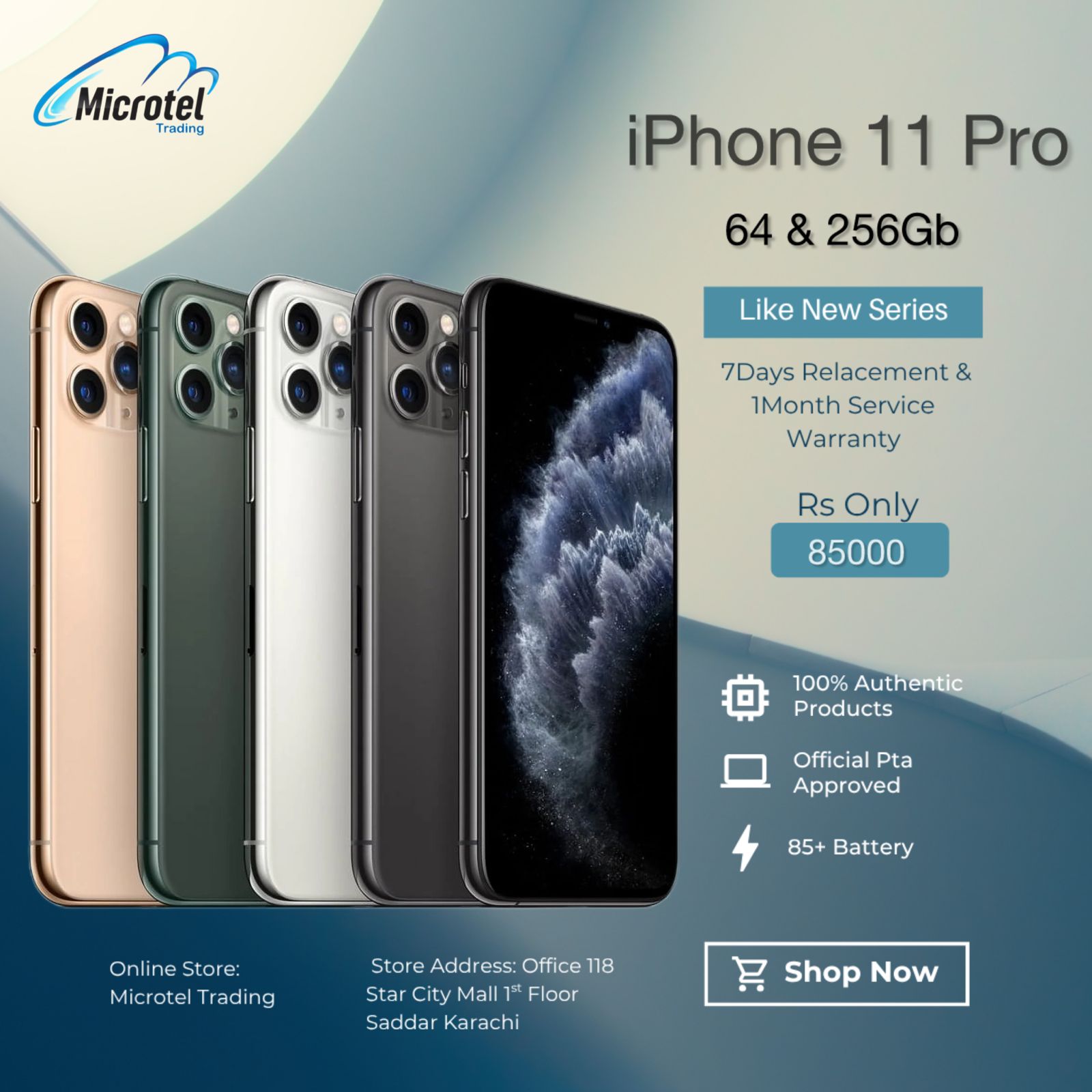 Apple iPhone 11 Pro Just LIKE NEW MOBILE 3months Warranty Delivery Time Line. With Free Gits 20w Adapter Usb Cable Free Cover Free Front And Back Protectors 15 Days Life Time Warranty For Official PTA Approved and Authentic Product 7Days Replacement Warranty And 3Months Repairing Warranty Battery Health Almost Between 85+ to 100% LIKE NEW MOBILES Note: Touch,Lcd, Camera No Warranty. For more details about iPhone Product contact us : 03216686888