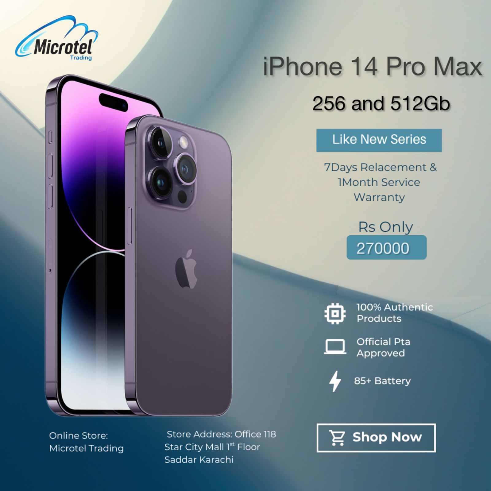 Apple iPhone 14 Pro max Just LIKE NEW MOBILE 3months Warranty Delivery Time Line. With Free Gits 20w Adapter Usb Cable Free Cover Free Front And Back Protectors 15 Days Life Time Warranty For Official PTA Approved and Authentic Product 7Days Replacement Warranty And 3Months Repairing Warranty Battery Health Almost Between 85+ to 100% LIKE NEW MOBILES Note: Touch,Lcd, Camera No Warranty. For more details about iPhone Product contact us : 03216686888